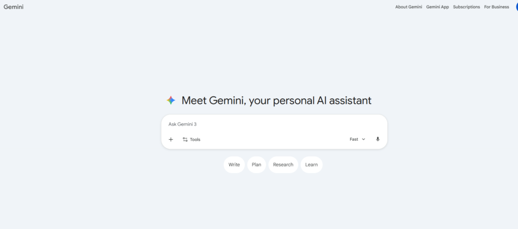 Gemini is Google's flagship AI assistant, and it comes with one major advantage that the others can't match: it's baked directly into the Google ecosystem. If your business runs on Google Workspace, Gmail, Docs, Sheets, Drive, Google Search Gemini is designed to work seamlessly alongside all of it.
