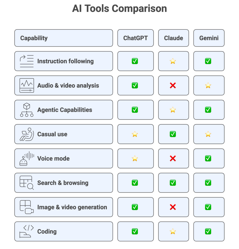 The smartest approach is to think in terms of workflow, not a single tool. Use each AI for what it does best, combine them strategically, and you’ll multiply your team’s efficiency and output.